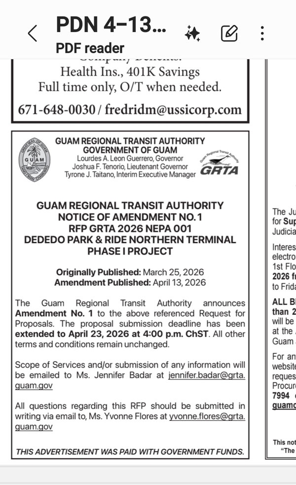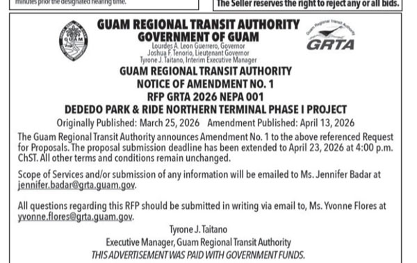 Dededo Park & Ride Northern Terminal Phase I Project - Notice of Amendment NO. 1